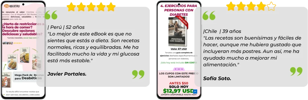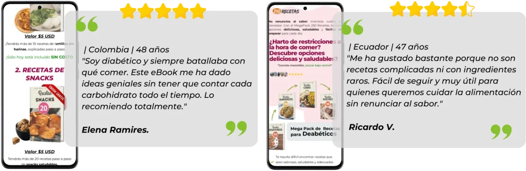 Descubre los testimonios de personas como tú, que al principio tenían las mismas preocupaciones. Hoy, gracias a su decisión, disfrutan de platillos deliciosos y equilibrados mientras mantienen su azúcar bajo control. ¡Tú también puedes hacerlo!»